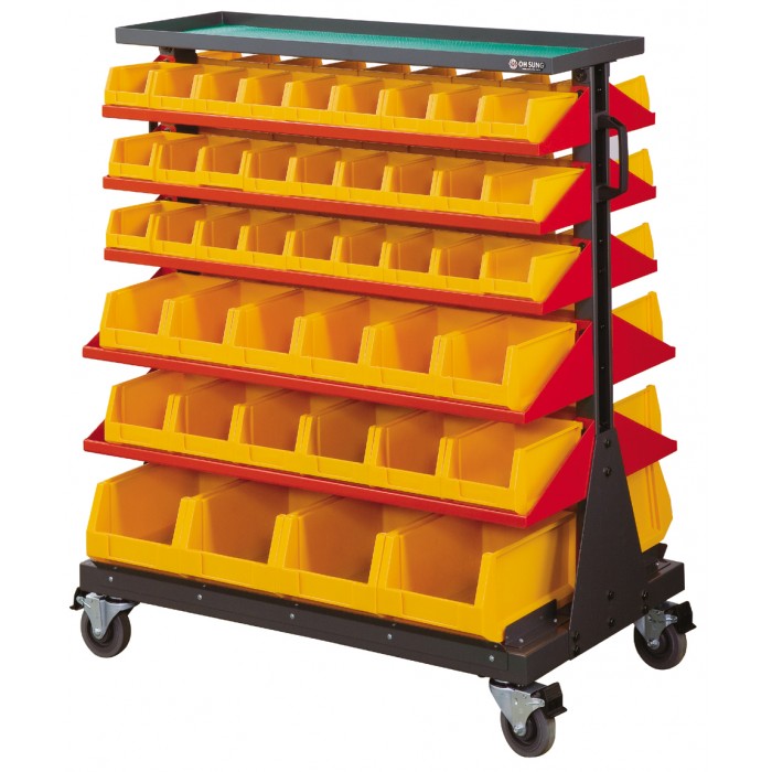 ◐특성 및 품질 1. 각종부속 및 부품류 등을 효과적으로 적치가 가능할 것 2. 다품종 소량부품의 보관이 용이할 것 3. BIN BOX가 개별적으로 탈부착이 용이할 것 4. 바퀴 부착으로 이동이 자유로울 것 5. BIN BOX의 받침이 선반식으로 되어있어 제품의 낙하를 방지하고 다량의 부품을 보관 하중에도 견딜 수 있을 것 6. 전체가 조립식으로 되어있어 일부부품만 교환이 가능할 것
