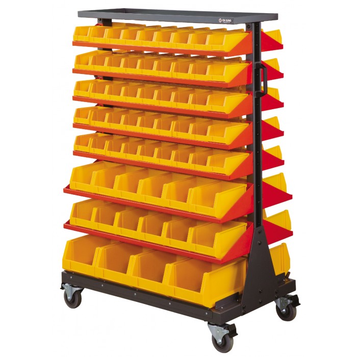 ◐특성 및 품질 1. 각종부속 및 부품류 등을 효과적으로 적치가 가능할 것 2. 다품종 소량부품의 보관이 용이할 것 3. BIN BOX가 개별적으로 탈부착이 용이할 것 4. 바퀴 부착으로 이동이 자유로울 것 5. BIN BOX의 받침이 선반식으로 되어있어 제품의 낙하를 방지하고 다량의 부품을 보관 하중에도 견딜 수 있을 것 6. 전체가 조립식으로 되어있어 일부부품만 교환이 가능할 것