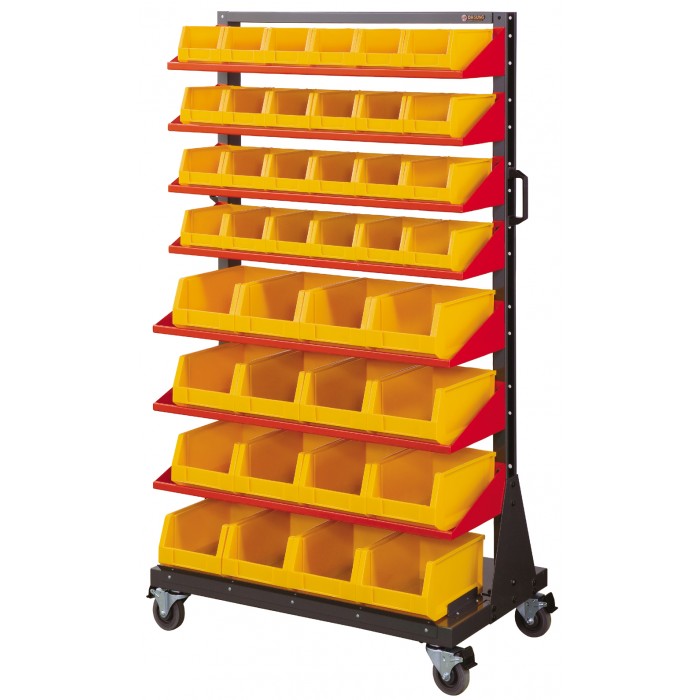 ◐특성 및 품질 1. 각종부속 및 부품류 등을 효과적으로 적치가 가능할 것 2. 다품종 소량부품의 보관이 용이할 것 3. BIN BOX가 개별적으로 탈부착이 용이할 것 4. 바퀴 부착으로 이동이 자유로울 것 5. BIN BOX의 받침이 선반식으로 되어있어 제품의 낙하를 방지하고 다량의 부품을 보관 하중에도 견딜 수 있을 것 6. 전체가 조립식으로 되어있어 일부부품만 교환이 가능할 것