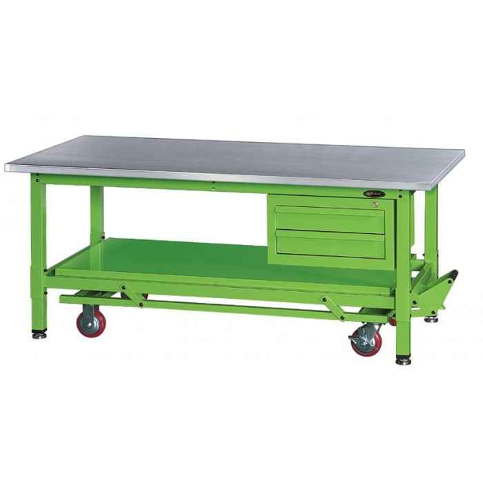 ◐ 특성 및 품질 1. 상판을 용도에 맞게 선택이 가능 합니다. 2. Wheel 방식으로 이동 및 고정이 가능 합니다. 3. Foot Pedal 과 Handle(Screw)Type이 있습니다. 4. Handle Type은 소음이 적고 고하중에도 견딜수 있습니다. 5. May, Load: Foot Pedal - 300KG, Handle - 500KG 6. Caster: 5inch 중량바퀴