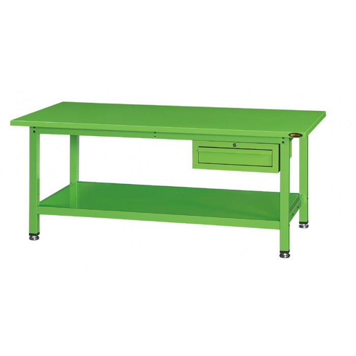 ◐ 특성 및 품질 1. 상판: Steel Plate(합판+Steel) 2. 철판(1.6T)을 30t로 절곡 후 용접합니다. 3.내부에 Melamin 합판을 밀착(30t)시킵니다. 4. 금형사상 작업대로 적합합니다. 5. 그린색으로 안정감과 청결성이 확보되었습니다. 6. 반영구적입니다.
